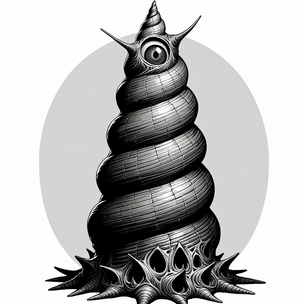 Hello, c'est pas mal ! en alternative via dall-e ^^ (le prompt est le titre de l'image) DALL·E 2023-12-07 10.49.42 - A menacing creature for a role-playing game with a conical body approximately 1.5 meters tall, segmented along its height. It has no snail shell or sn.png Ha oui pas mal celui-là, me...